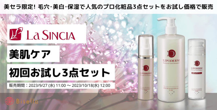 美容の業務用用品や専門商材を格安で卸販売する通販サイトの「美セラ」(運営会社:株式会社イントゥ)は、9月27日(水)から期間限定で、美容のプロフェッショナルブランドである「ラ シンシア(LA SINCIA)」で特に人気の3商品をセットにし、特別価格で販売いたします。さらに、先着20名様に、「ホワイトメソッド レッドデュアWH+ ゲルシートマスク」のサンプルもプレゼントいたします。