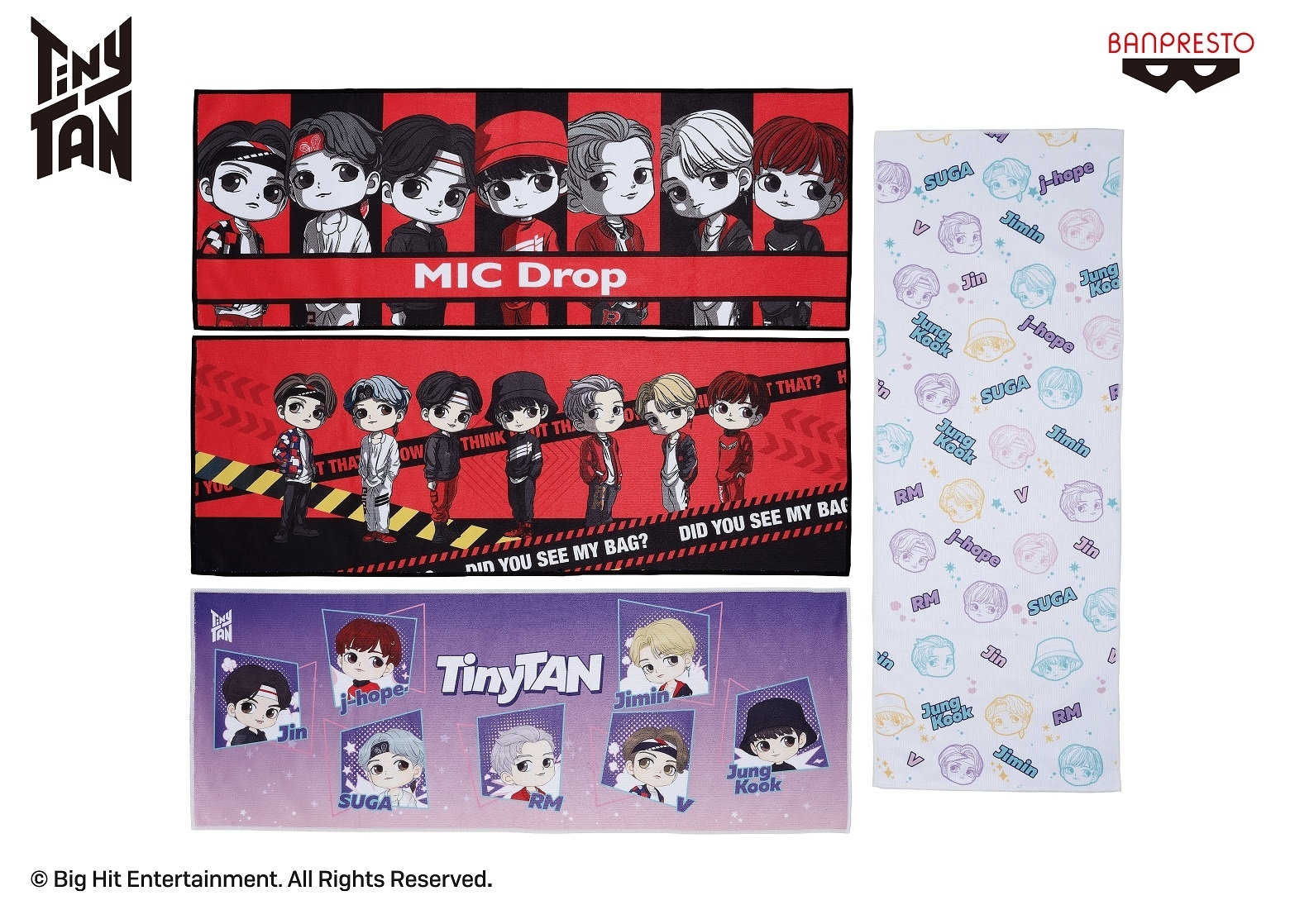2021年8月には、バンプレストブランドの人気フィギュア「Q posket」シリーズから、「TinyTAN」の7人を一気に商品化いたします。大きく艶のある瞳と、ふんわりと優しいほっぺたの質感、大胆なアレンジと繊細な造形が特徴です。髪の毛の造形をはじめ、服のしわや靴の質感など、細部まで作り込んでいます。本体は同梱の台座にセットして飾ることができ、カラーは各商品ノーマルカラーとスペシャルカラーの2種で展開予定です。取扱店は全国のゲームセンター、アミューズメント施設などです。