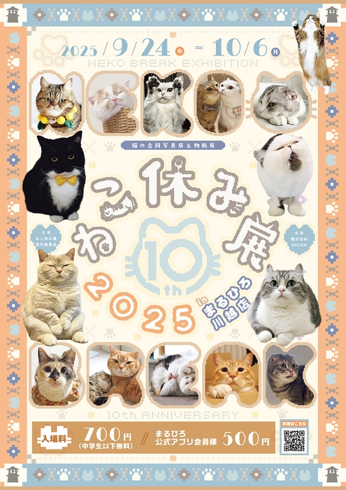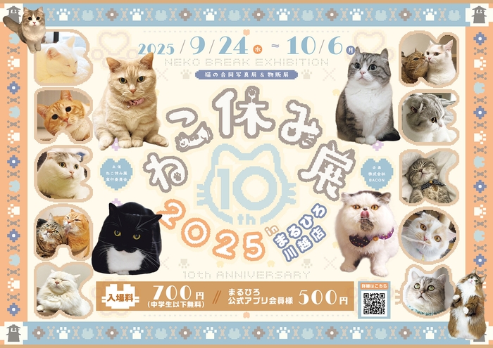 株式会社BACON(べーこん)は、累計動員数200万人以上を誇る人気猫クリエイターたちが集結する合同写真展&物販展 『ねこ休み展』を、2025年9月24日(水)~10月6日(月)にまるひろ川越店(埼玉県・川越市)にて開催いたします。今年で開催10周年を迎える本展は、大人気猫クリエイターたちの作品が小江戸・川越に集結する特別企画!10周年記念として、限定グッズやアーカイブ年表などを一堂に展示します。小江戸情緒ただよう川越の街歩きと組み合わせれば、日常を忘れる癒しのひとときを満喫いただけます。