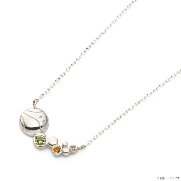 『機動戦士ガンダム』に登場する「ハロ」をモチーフにしたシルバーネックレスです。ころんとした半立体のハロに、イメージカラーストーンを組み合わせました。同シリーズのピアス/イヤリングとセットコーデが楽しめるデザインです。