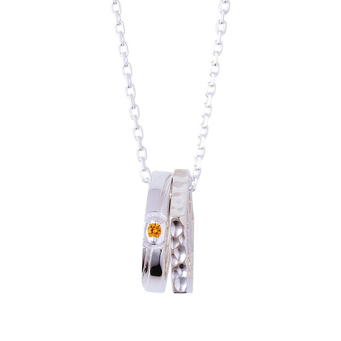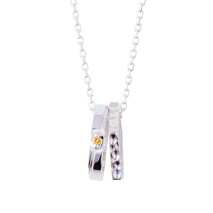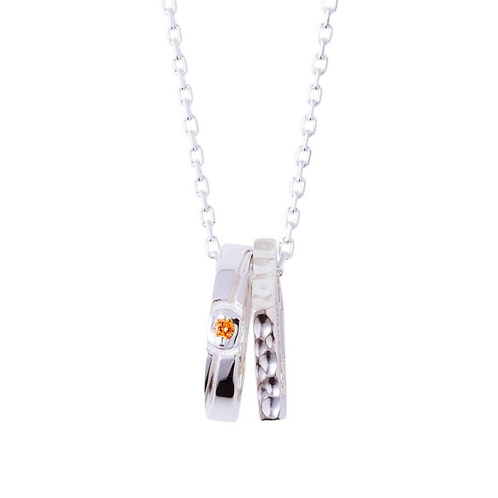 もう一方は青い監獄をイメージした五角形リングに槌目加工を施した二連ネックレスです。