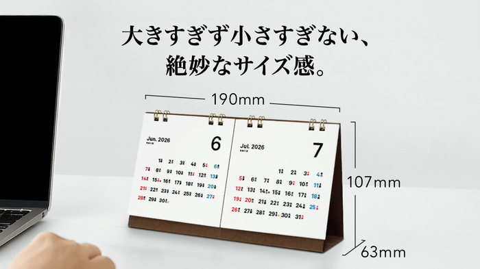 机の上で邪魔にならず、視認性も損なわない。大きすぎず小さすぎない絶妙なサイズ感で、日常に心地よく馴染む卓上カレンダーです。