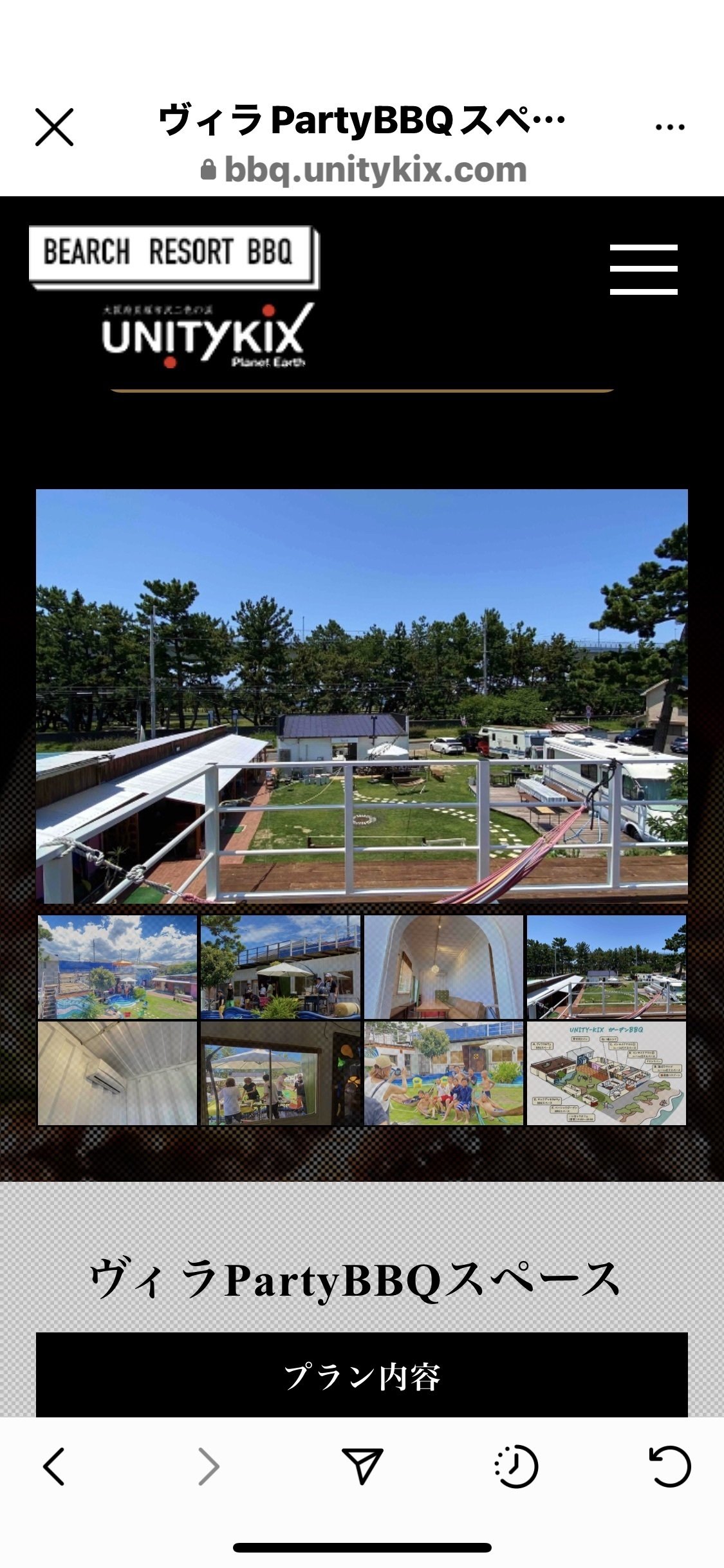 南大阪 貝塚市 UNITY KIXビーチリゾートー二色の浜 非日常感抜群のガーデン空間で、 グループ貸し切りBBQプラン 9月2日スタート!!