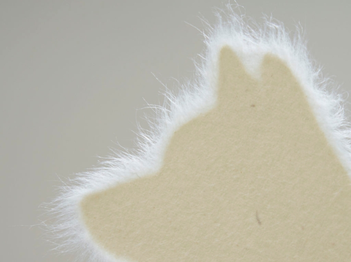 職人が手漉きした紙を、ひとつひとつ丁寧に手ちぎりし、ふわっとした犬の毛並みを表現しています。