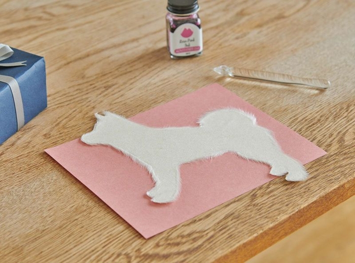- 犬種のイメージに合わせて、背景となるカラーペーパーの色を選びました。 落ち着いた、ビンテージ感のある色合いが心を和ませてくれます。