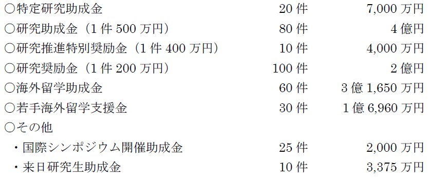 今年度の上原賞は2名、各種助成件数は335件、助成金総額(上原賞副賞を含む)は13億