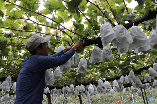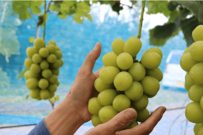 良い実、良い房を選定することで、質の良い一房が成長。出荷される実は35粒程度に揃えられており、酸味がとても少なく糖度の高い圧倒的な美味しさがあります。種もなく皮ごと食べられるので、子供たちが真っ先に手を伸ばして喜んで食べてくれる。その姿が立澤さんはとても嬉しいといいます。