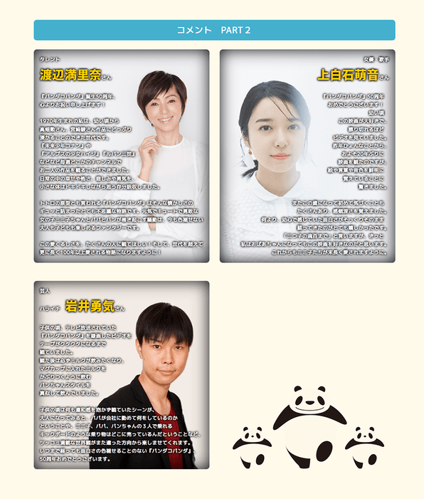 パンダコパンダ公式ホームページ 50周年お祝いコメントページ