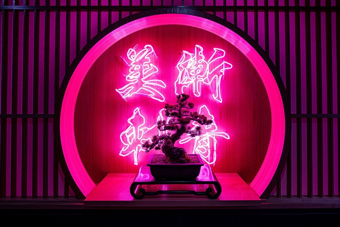 美漸氏を象徴する般若が店内を見渡す店内空間は、その世界観に一気に飲み込まれます。