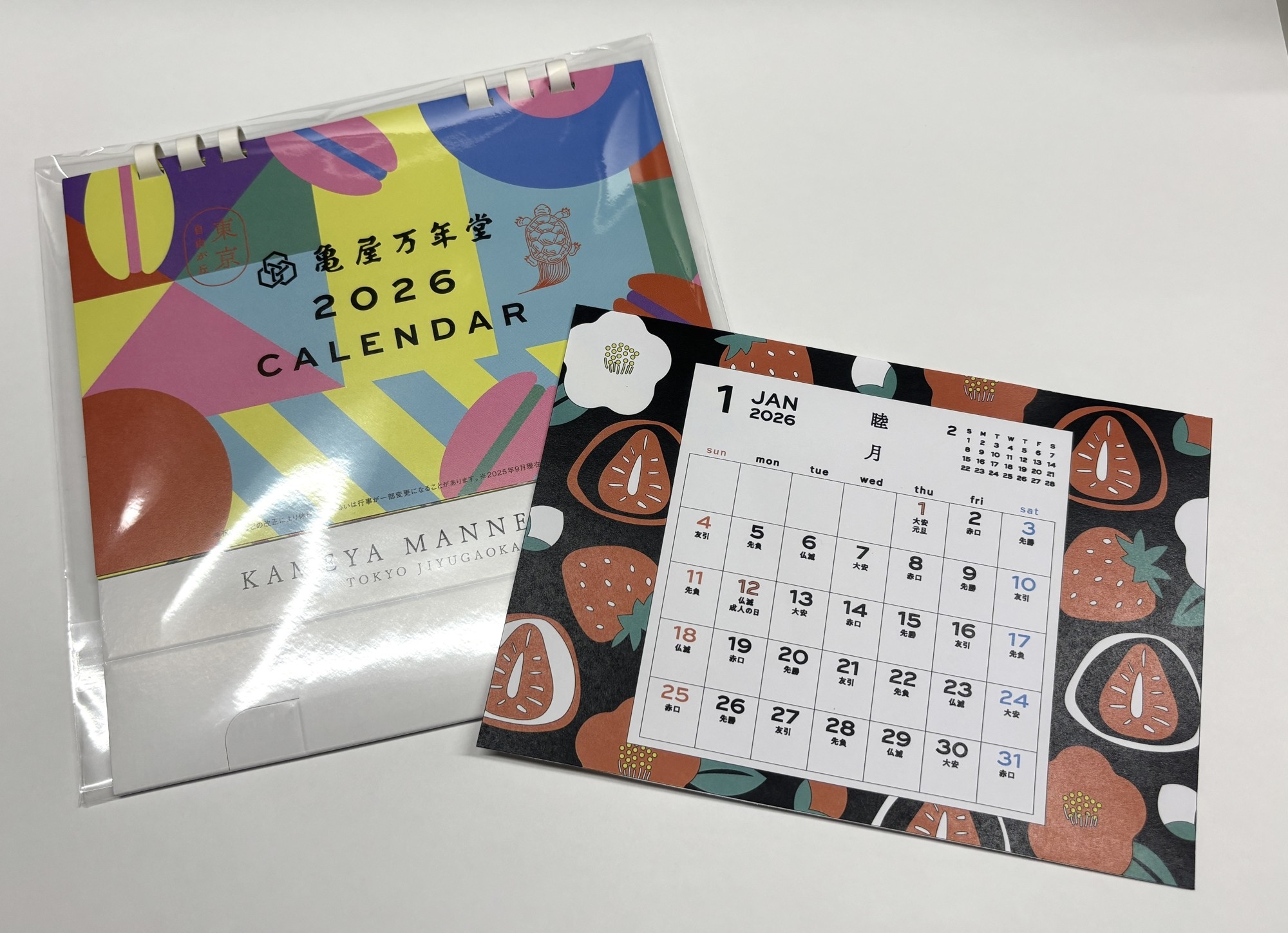亀屋万年堂では創業日である12月18日をナボナの日と制定しています。創業日でもあるナボナの日に身近に感じていただきたいとの思いで、亀屋万年堂の季節のお菓子を描いたオリジナル卓上カレンダープレゼントを実施いたします。12月1日(月)より、一回のお買物につき2,500円(税込)以上お買上げで1つカレンダーをプレゼントいたします。無くなり次第終了ですので、お早めにお求めください。