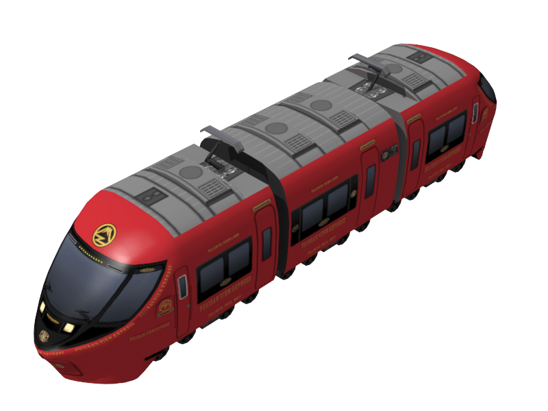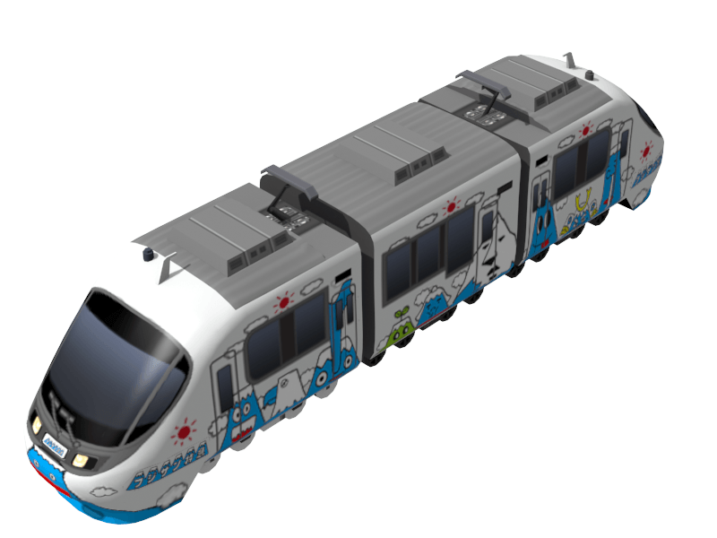 富士山をキャラクター化した「フジサンクン」たちが描かれたユニークな外観と、富士山の絶景を楽しめる前面展望車両を持つフジサン特急は、富士山に一番近い鉄道・富士急行線の名物特急として有名。