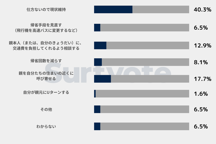 Surfvote投票結果 「実家の親元への遠距離介護。帰省の交通費が月8万円。家計破綻を防ぐために、するべきことは?」