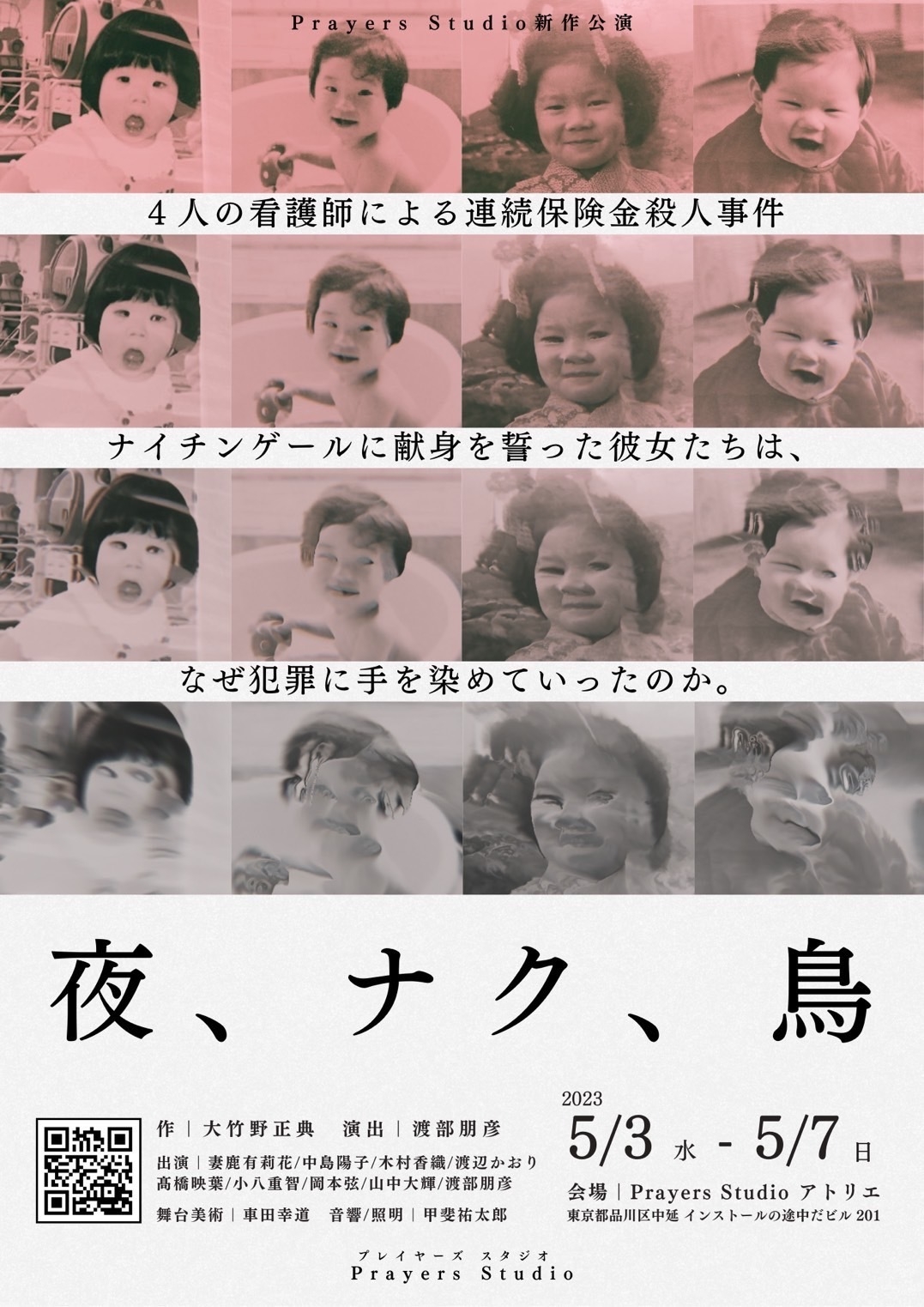 Prayers Studioは、品川にあるアーティストのシェアアトリエ「インストールの途中だビル」に小さなアトリエ兼劇場を構え活動している劇団です。とことん“演技の質”にこだわり、「良い作品を創るためには良い俳優がいなければならない」との理念から研究と俳優育成にも力をいれ、活動を続けています。