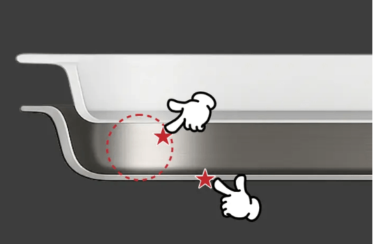 内トレーと外容器は乗せるだけでなく、しっかりホールドできる構造。安定して安全に使えます。