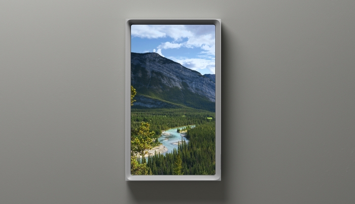 「Atmoph Window Yo」の窓フレームは、シンプルでありながらも柔らかみのあるデザインです。窓らしさを最大限に引き出しつつ、近未来感のあるフォルムは、家の玄関、居間や仕事部屋、どんな空間にもぴったり馴染みます。スタンド型の充電器Charging Sill(チャージング シル)を追加すれば、フィギュアや小物を置いて、インテリアとして自分の好きな空間を作り上げることもできます。