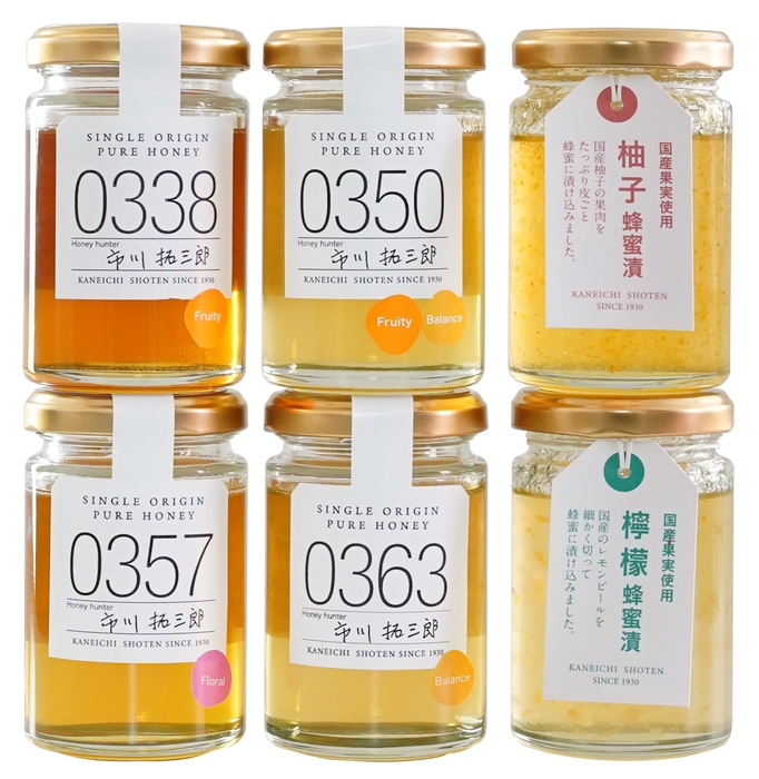 内容:国産シングルオリジンハニー4本と、人気の蜂蜜漬け2本が入って大変お得な初めての方にもおすすめのセットです。
