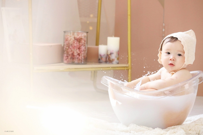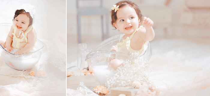 あったかいお湯でちゃぷちゃぷと赤ちゃんも楽しくて自然な笑顔が出やすいミルクバス撮影。この時期しか見られない赤ちゃんのムチムチで柔らかな肌の質感も一緒に写真に残すことができます。赤ちゃんのテンションも上がるミルクバスの撮影では可愛らしい表情やおもちゃで遊ぶ仕草もたくさん見られます。ぜひその様子を撮影したライフスタジオ青山店の動画もご参考ください。