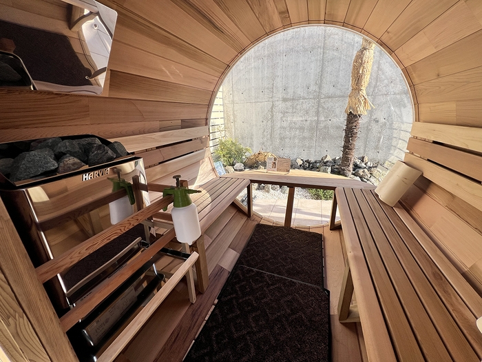 そしてこの度、今まで以上にお客様に冬でも暖かく快適で特別なグランピングをお届けしたいと考え、2023年7月14日に新規オープンしたグランピングドーム「宙の棟」と高級ヴィラタイプの「月の棟」に完全プライベートで使い放題のバレルサウナを設置いたしました。