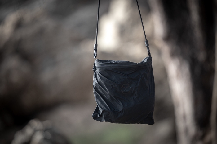更にコンパクトに収納してショルダーバックにも収納できます。またジャケット自体をショルダーバックとして、他の必需品を運ぶ最小限のバッグに変身するよう設計されています。