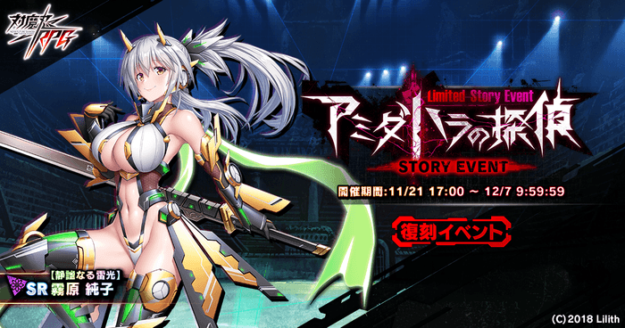 株式会社インフィニブレイン(本社:大阪市中央区、代表取締役:武山 英治)は、オンラインゲームプラットフォーム「DMM GAMES」( https://games.dmm.com/ )にて配信している、近未来くノ一ロールプレイングゲーム『対魔忍RPG』は、11月21日 (月) より限定ユニットを獲得できる期間限定復刻ストーリーイベント「アミダハラの探偵」などのお知らせをいたします。