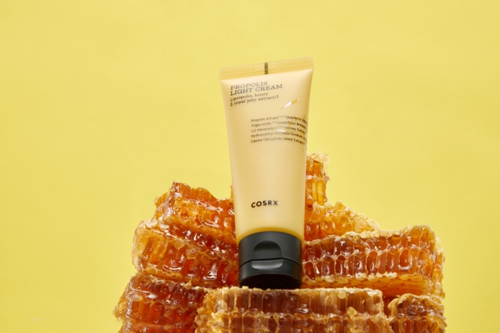 スキンケアの最後に使う「フルフィットプロポリスライトクリーム」は、肌に健康的な活力を与えるフルフィットプロ・バリアコンプレックス(プロポリスエキス・蜂蜜エキス・ローヤルゼリーエキス) 65.69%配合。滑らかでしっとりしたテクスチャーのクリームが肌に栄養を満たしながら、潤いたっぷりのツヤ肌に仕上げます。チューブタイプなので使いやすい商品です。