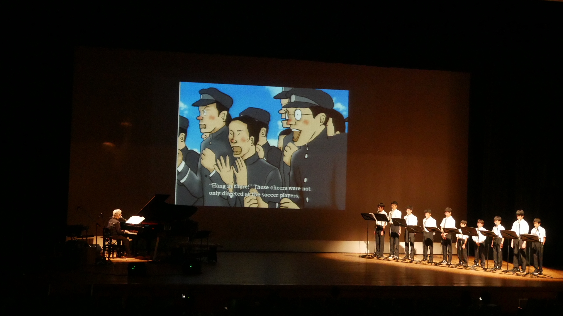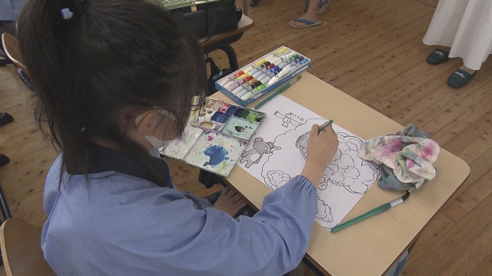 上演作品の中には、スクリーンに投影される紙芝居の作画にあたり、小学生に物語(シナリオ)を聞いてもらい、印象的なシーンを描いてもらった絵を参考にしたものもあります。