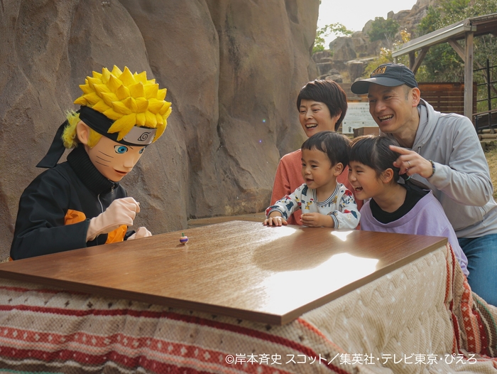 兵庫県淡路島「ニジゲンノモリ アニメ淡路島公園」にある、アニメパーク「ニジゲンノモリ」の人気アトラクション「NARUTO&BORUTO 忍里」では、うずまきナルトと一緒に写真撮影やゲームができる冬のグリーティングイベントを明日、2025年12月6日(土)よりいよいよ開催いたします。今回のグリーティングでは、冬休みにピッタリの「ナルトと独楽回し対決」と「ナルトとこたつポカポカフォト」実施いたします。
