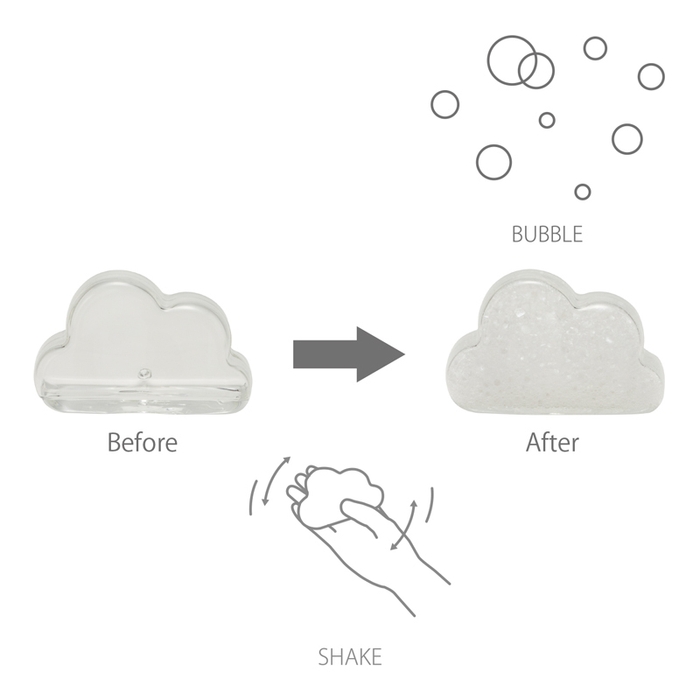 そのままでもかわいい雲形のガラスオブジェが、振ることで中のシャボン水が泡立ち、まるで雲のように変化します。