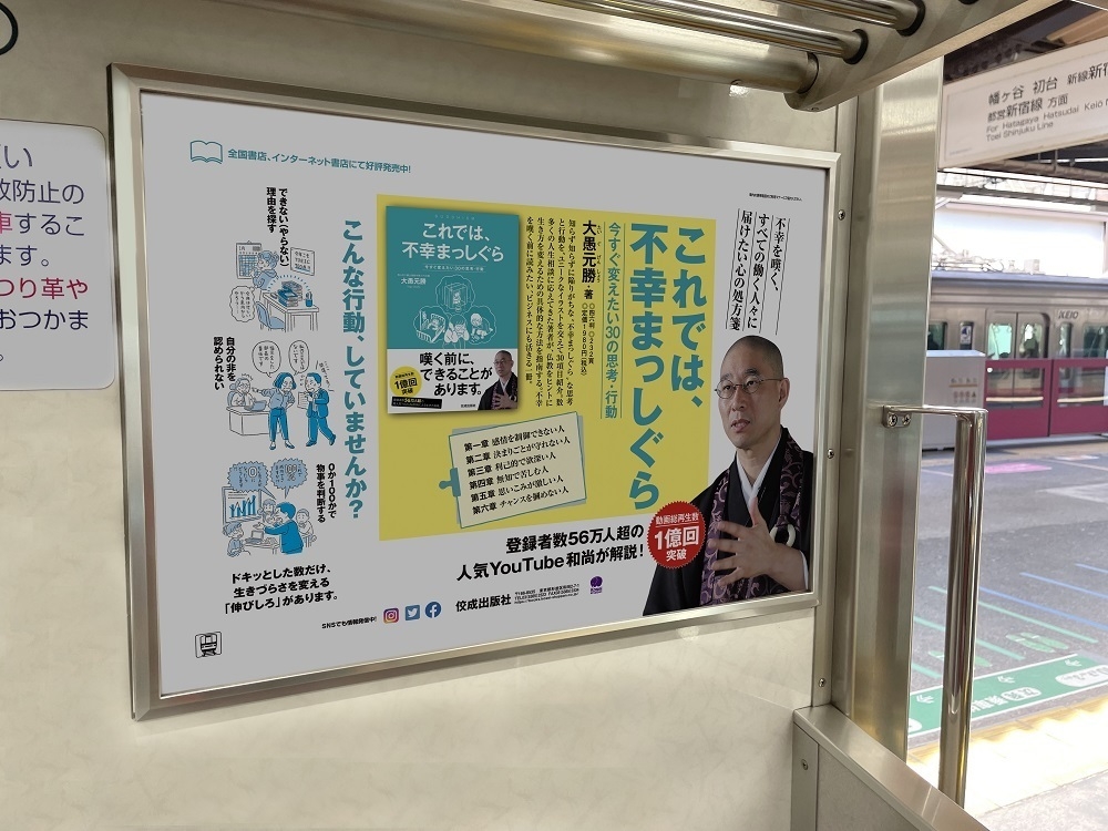 株式会社佼成出版社(所在地:東京都杉並区、代表取締役:中沢 純一)は、『これでは、不幸まっしぐら 今すぐ変えたい30の思考・行動』(大愚元勝・著)を、「京王線」「京王井の頭線」(いずれも京王電鉄)の車内に、2023年4月から交通広告ドア横ポスターとして掲出しました。