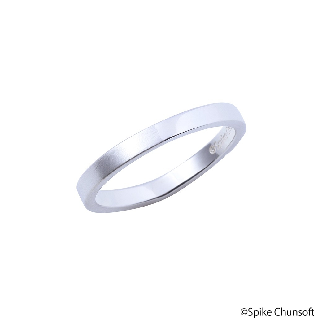 リング半面をマットで仕上げ、内側にはモノミの口癖を英語で刻印しました。重ねづけも楽しめるデザインです。