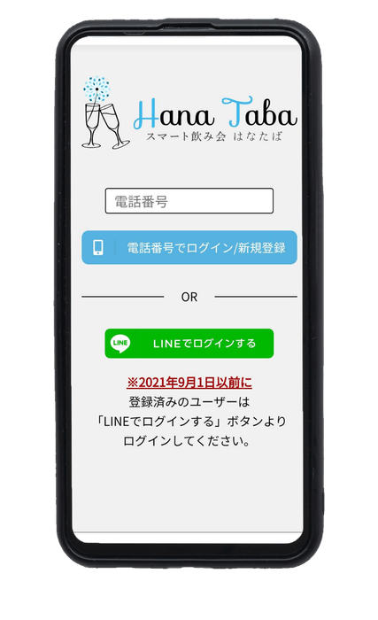 ギャラ飲みマッチングアプリ スマート飲み会はなたばはLINE連結型のアプリ不要のギャラ飲み用WEBアプリです。