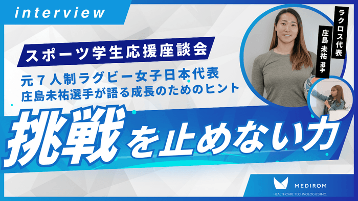 「健康を、もっと、あたらしく」をコンセプトにヘルスケア事業を多角的に展開するメディロムグループは、2025年4月21日(月)に元7人制ラグビー日本代表で現在ラクロス選手の庄島未祐選手をゲストに迎え、「挑戦を止めない力」をテーマに就活応援座談会を実施いたしました。