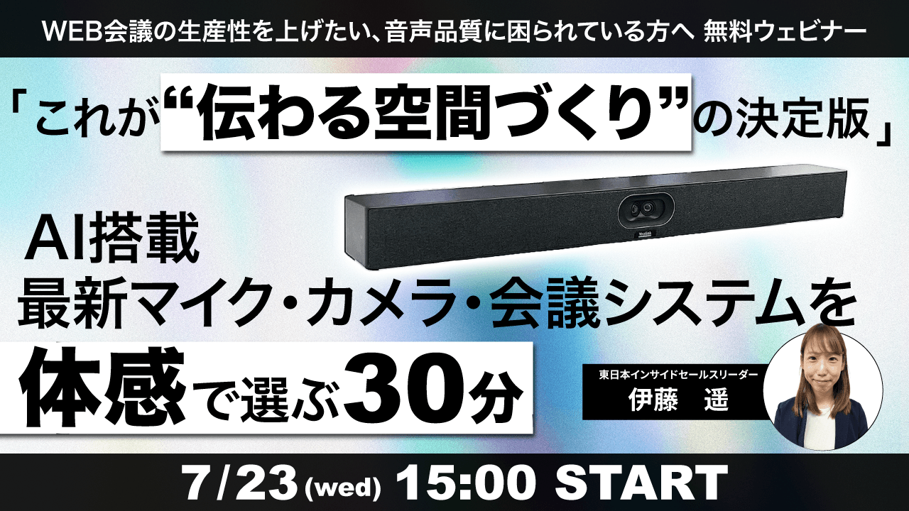 【7/23(水)】無料ウェビナー|WEB会議の生産性を高める、AI搭載 最新マイク・カメラ・会議システムを“体感”で選ぶ30分【ギンガシステム】