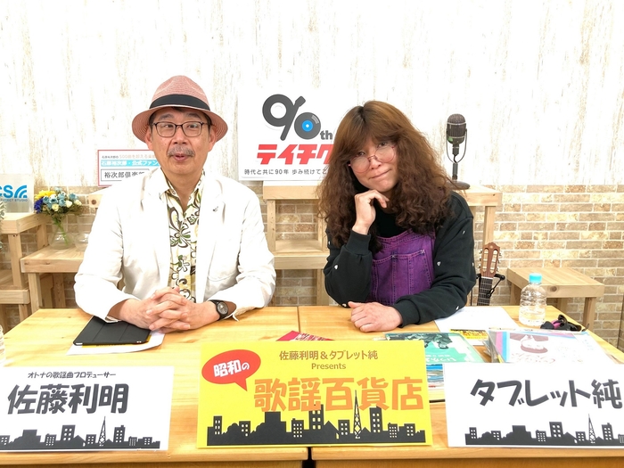 今回の番組スタートに際し佐藤利明氏は「2024年は昭和でいうと99年、来年は昭和100年となります。テイチクが創立した昭和9年は、ディック・ミネさんがテイチクからデビューを果たし、石原裕次郎さんが誕生しました。また個人的には、ムード歌謡の貴公子・タブレット純さんのために「浜松町ナイトクラブ」を作詞してから、ちょうど10年。その間、純さんとのユニットで、トークライブやラジオ、歌謡曲講座をご一緒してきました。『昭和の歌謡曲』が大好きな“遅れてきた世代の二人”が、気の向くままに様々なジャンルの歌謡曲の魅力を語ります。かつて百貨店にあった『お好み食堂』のような盛り沢山のメニューを取り揃えております。どうぞ、よろしくお願いします」と、コメント。