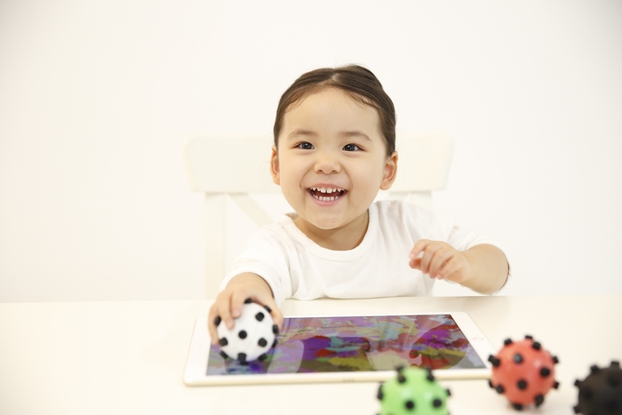 デジコロは指でiPadを触るだけじゃない、 子供達がiPadの上をその手で握って転がして遊べる全く新しいおもちゃです。
