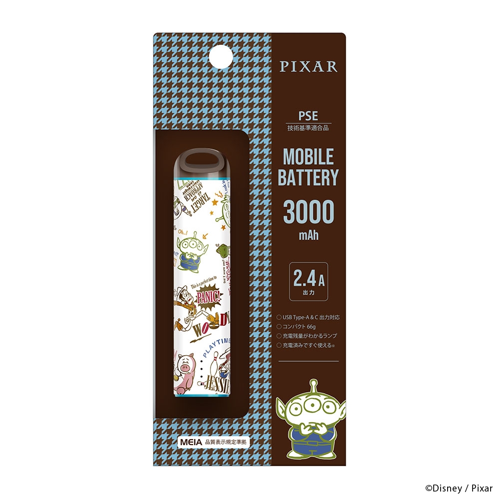 ディズニーキャラクターデザインの軽量コンパクトでポーチにも収まるスティック型モバイルバッテリー 3,000mAhです。USB type-A/Type-Cポートでの出力対応・2台同時充電も可能です。また、スマートフォン本体を充電しながらモバイルバッテリーも充電できるパススルー充電に対応しています。お手持ちのストラップを付けて落下を防止できる便利なストラップホール付き。充電済みですぐ使える(※満充電ではありません。)。PSE適合商品。