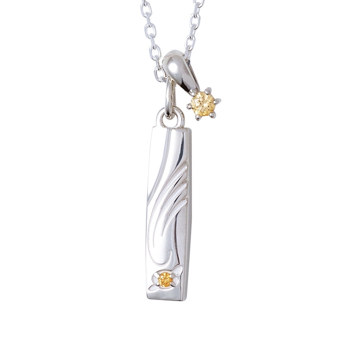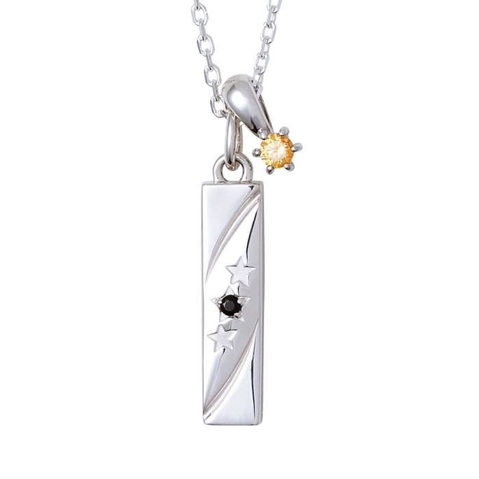 シンプルなバータイプのトップにはJupiterの世界観を取り込み、裏面にはユニット名を刻印しました。ユニットカラーのストーンチャームがワンポイントのデザインです。