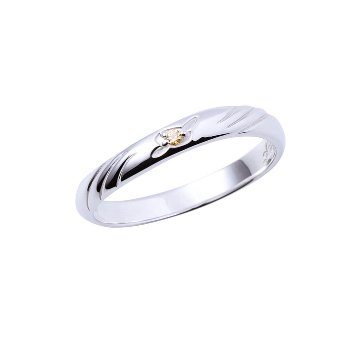 輝きのシルエットが浮かび上がる表面の中央にはユニットカラーストーンをセットし、内側にはユニット名を刻印しました。Jupiterの世界観を取り込んだ平打ちフォルムのデザインです。