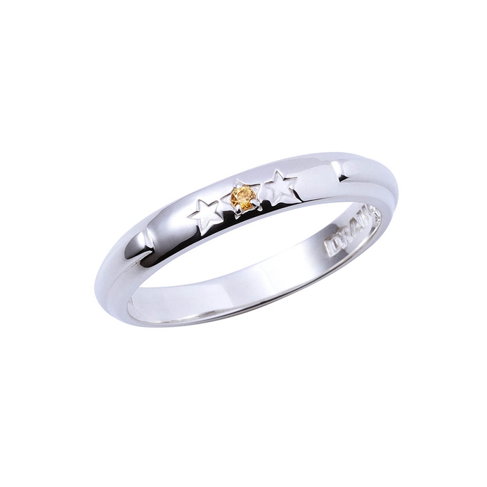 星型シルエットが浮かび上がる表面の中央にはユニットカラーストーンをセットし、内側にはユニット名を刻印しました。DRAMATIC STARSの世界観を取り込んだ甲丸フォルムのデザインです。