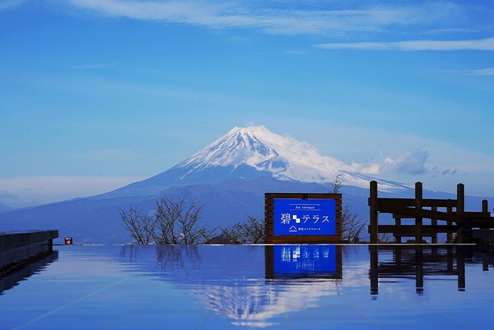 ホテルから車で約45分、1年を通して大パノラマの絶景と豊かな自然が広がる「伊豆パノラマパーク」の山頂エリアでは、1月中旬から3月中旬までさまざまな梅を、2月中旬には早咲きの河津桜や菜の花を楽しめます。また、澄んだ空気のなかで雪化粧をした富士山の絶景も見どころのひとつです。