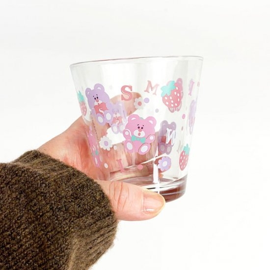 お馴染みのイチゴやくまのデザインを施した耐熱ガラスのシリーズから、まずはグラスタンプラーをご紹介♪