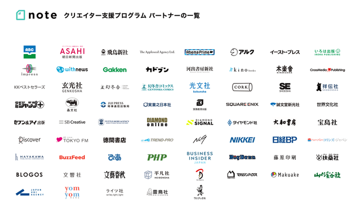 クリエイターが活躍する場を広げるために、noteが出版社やメディア、クリエイターエージェンシーなどのメディアパートナーとともに才能の開花を後押しするプログラムです。