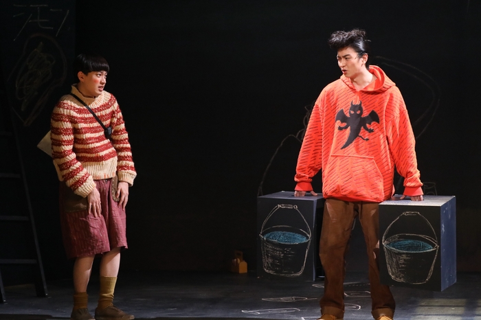 本作は児童養護施設で育ったズッキーニと呼ばれる少年とその仲間たちの成長を描いた物語。舞台上は3方そして床を黒板で囲まれただけでそれ以上のセットはほぼ存在しない。ズッキーニはシモン(稲葉友)やカミーユ(川島海荷)ら子どもたち、そして彼らを見守る警察官のレイモン(平田満)ら大人たちが思い思いにチョークで場面説明やそれぞれの心情をチョークで壁や床に描く。この手法が実に興味深く面白かった。やがて話は彼らが何故この児童養護施設に送られたのか、家族との厳しく切ない関係にも踏み込んで語られる。はたしてズッキーニが迎える運命とは――。