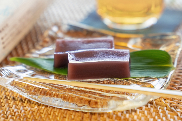 甘さすっきり、軽くツルッとしたのどごしで食べやすい水ようかんです。