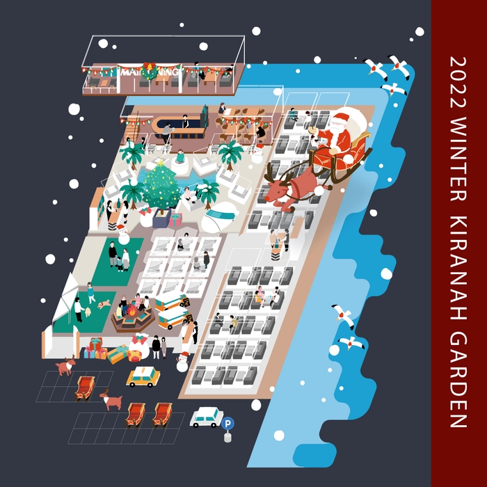 株式会社 KIRANAH RESORT(読み:キラナリゾート、本社:東京都千代田区)が運営する屋外レジャー・レストランの複合施設「キラナガーデン豊洲」は、この冬、「ホッとする、ホットな冬キラナ」をコンセプトに、寒い冬を存分に楽しむコンテンツを提供していきます。その第二弾として2022年12月24日(土)・25日(日)限定で、”ホワイトクリスマス”を楽しめる『雪山』や『雪の滑り台』が、広大な施設内の芝生広場に登場します。