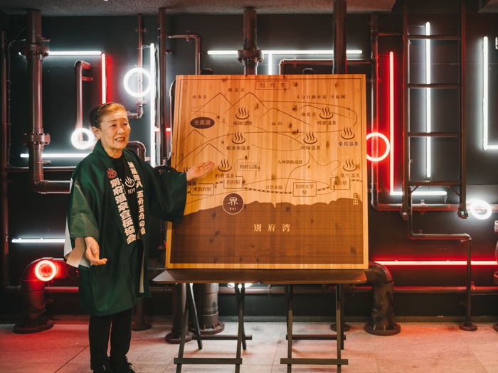 夏祭り会場の一角にある「地獄の湯遍路案内所」では、「別府八湯温泉道」に登録されている別府市内の八十八湯を知り尽くした温泉名人が、各温泉の特徴や魅力を教えてくれます。入浴法や共同浴場の入り方、効果的なめぐり方をはじめ、地元ガイドも務める温泉名人だからこそ知っている秘湯情報など、翌日の別府観光や地獄めぐりにも生かせる情報が盛り沢山の案内所です。