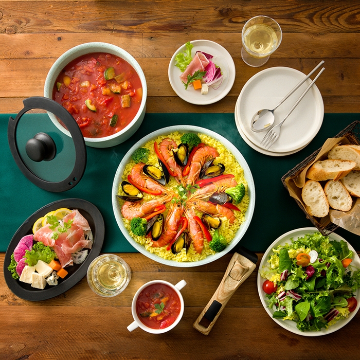 フライパンや鍋には、丈夫さ、こびりつきにくさ、熱伝導のよさなどの機能は必要ですが、ヒスイ&ダイヤモンドWストーンフライパンシリーズは、キッチンや食卓を美しく彩るデザインにもこだわっています。