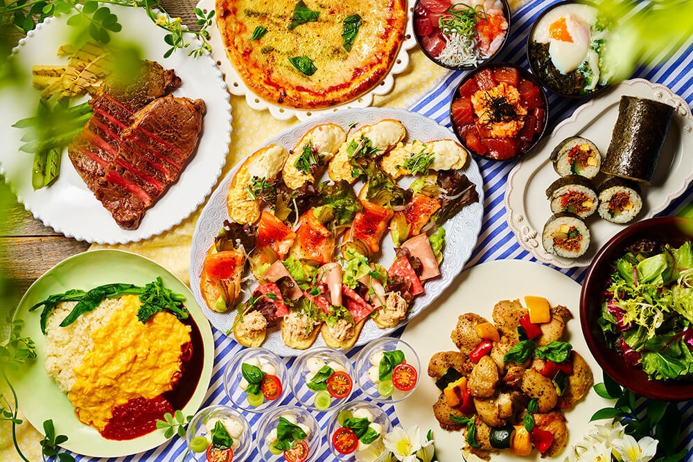 サーモン、マスタードポテト、ツナ&ハムと3種類の味から選べる「オープンサンド」や、ピザなどのフィンガーフードをメインに、ピクニック気分が味わえるメニューを取り揃えました。また朝食ブッフェで人気の「アレンジのっけ丼」がランチブッフェにも登場し、「オープンオムライス」もソースは選べる2種と、お腹もしっかり満たされる充実のラインナップです。好きなものだけを贅沢に並べて、大阪ベイエリアの景色を眺めながら、お食事をお楽しみいただけます。