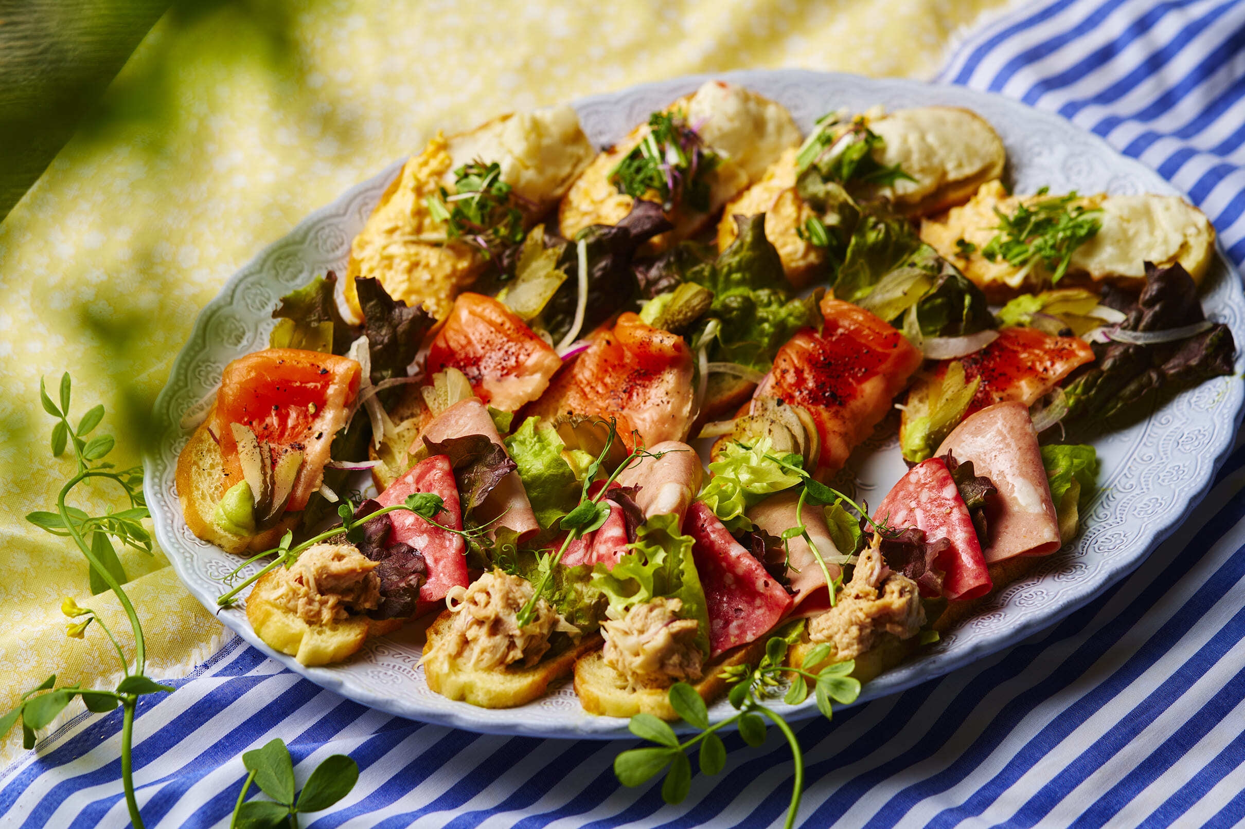 ・オープンサンド(サーモン・マスタードポテト・ツナ&ハム)