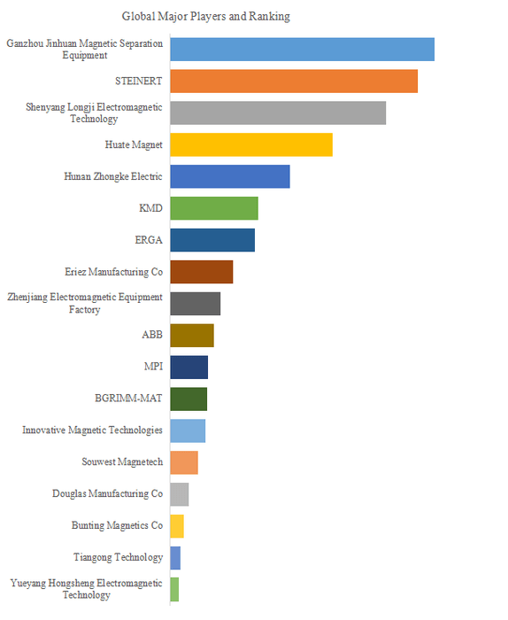 世界市場における主要製造業者には、Ganzhou Jinhuan Magnetic Separation Equipment、STEINERT、Shenyang Longji Electromagnetic Technology、Huate Magnet、Hunan Zhongke Electric、KMD、Eriez Manufacturing Co、ERGA、Zhenjiang Electromagnetic Equipment Factory、ABBなどが名を連ねる。2024年時点で、トップ10企業が売上ベースで約40.0%の市場シェアを占めており、技術力とブランド力を武器にグローバル競争を展開している。これらの企業は、磁力制御精度の向上、省エネルギー性能の強化、IoTやAIを活用した機器のスマート化など、製品ポートフォリオの高度化に注力している。また、新興市場の開拓や既存顧客との長期契約による収益安定化戦略も進められており、市場支配力の強化と差別化が進行している。